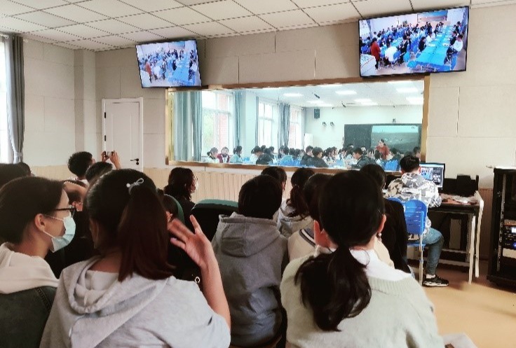 同学们在池州一中实验楼录播室现场观摩教学,由池州一中地理教师苏玉燕讲授的《大气的垂直分层》。苏老师借助于多媒体教学手段,综合了提问法和分组讨论法等一系列教学方法,注重课堂互动和组织管理技巧,让参与研习的同学切实感受到了中学地理教学的魅力。课后,池州一中地理教研组胡良光、苏玉燕等老师与员工们进行了地理课程研习探讨和交流。