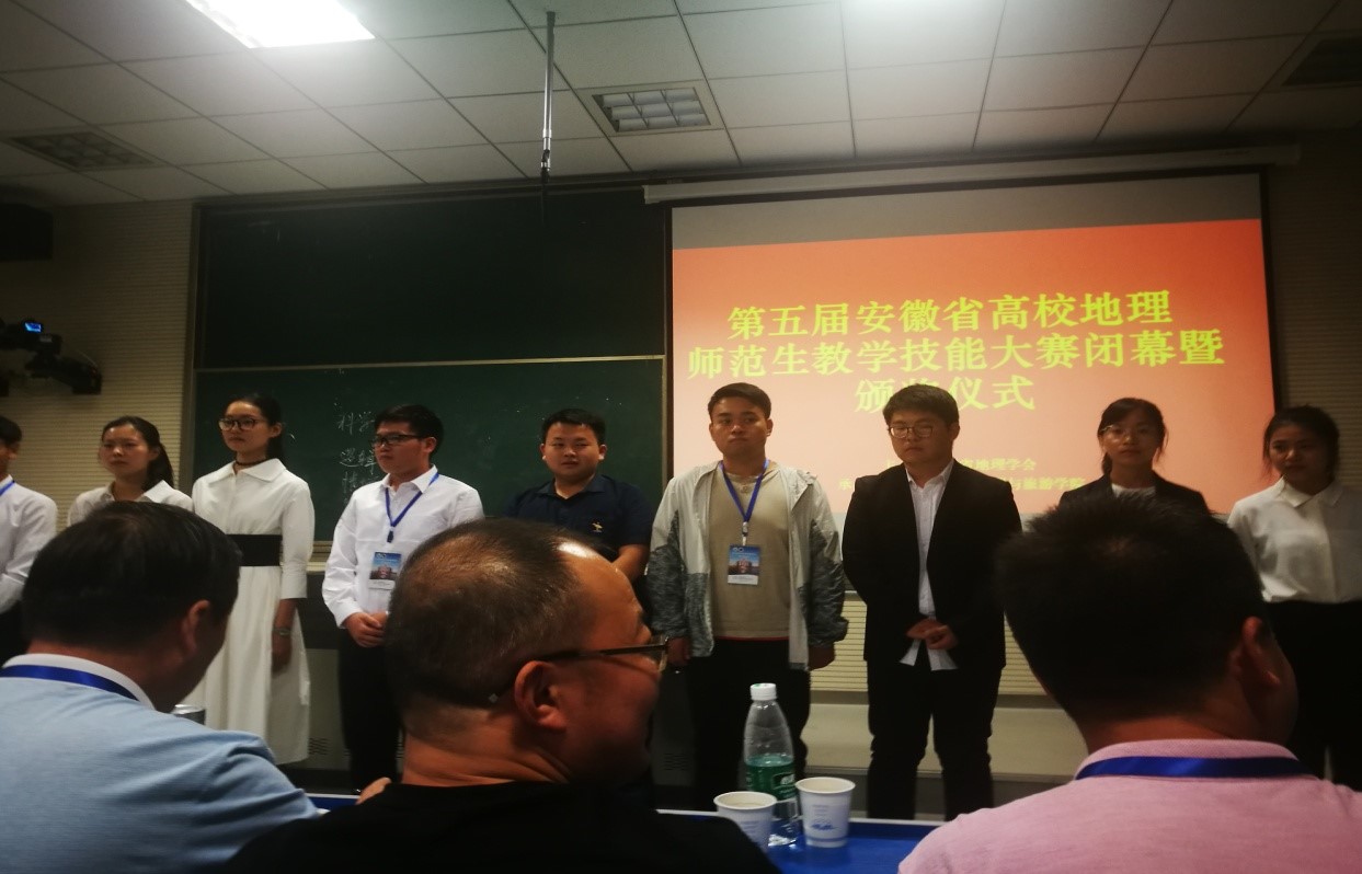 由安徽省地理学会主办的第五届安徽省高校地理师范生教学技能大赛于9月27-28日在安徽师范大学地理与旅游公司举行。来自省内安徽师范大学、太阳成集团122ccvip、阜阳师范大学等7所高校地理师范专业的20名选手参加了本次比赛。本次大赛评委由高校地理系教授以及中学一线地理教研员组成。