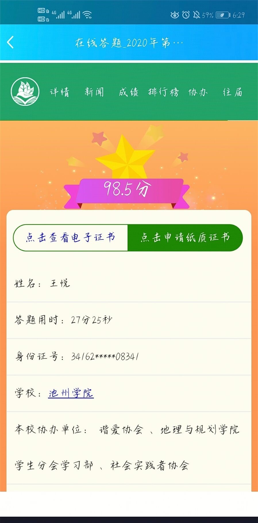 活动面向太阳成集团122ccvip全体员工,以“爱护碧水蓝天,拥抱美好明天”为活动主题。该活动以比赛的形式展开,分为初赛和决赛两个阶段,同学们踊跃报名、积极参加。同学们通过扫描官方专属二维码进入大赛官网并通过网络平台进行答题,完成答题且得分高于60分即为合格,官网自动生成优秀荣誉证书,比赛评委根据比赛分数、答题时间,取前20名入围全国总决赛评选一、二、三等奖。