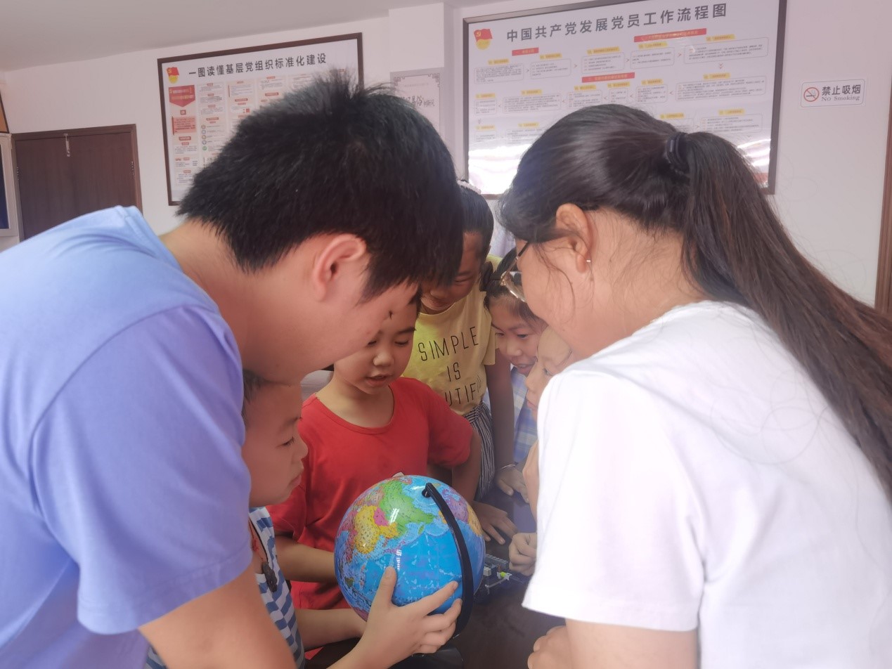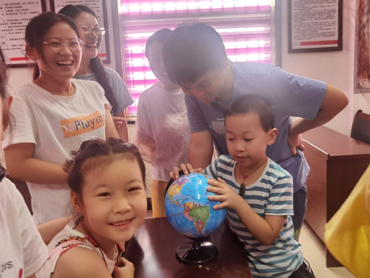 课堂上,孩子们积极举手,争相发言,他们围着地球仪,充满了好奇,不停地向志愿者提出自己的疑问,志愿者们一一耐心热情地解答。