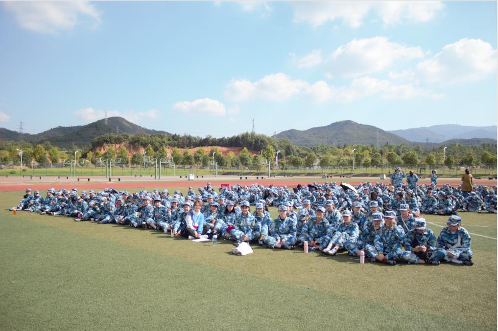 我们换上迷彩军衣,系上坚韧的腰带,伴随着清晨的第一缕阳光,满怀信心,阔步向前。这个秋天的军训少了夏日中的烈阳,少了汗流浃背的衬衫,却没有缺少温暖的关怀。在我们在太阳底下站军姿时,学姐们送来了第一杯果茶,也给我们带来了秋天的第一份温暖;当然,我们也遇到了可爱的教官,训练中的教官十分严厉,对我们的军姿等一些基本动作反复指导与纠正。正是教官的严格让我们感受到军人的不容易,这也是一次磨练意志与毅力的很好机会,只有经过铸造才能成为一块好钢!听着铿锵有力的口号,走着整齐划一的步伐,时刻体会军人的作风,虽然艰苦但却十分难忘。所谓有苦也有甜,我们感受到了军训中教官的严厉,也见到了私下教官们可爱的一面,有着5G冲浪的教官们用着流行语和我们交谈,休息的时候也会给我们放一些流行歌曲带动我们活跃气氛,平时训练表现好也会得到教官的糖果......这个过程有欢声笑语也有着声声“哀嚎”。军训几天的我们周围已经没有了白皙的皮肤,增加的只是脚上的酸痛的肌肉,但是我们依然相信,通过艰苦的训练,我们会成就一个崭新的自己。