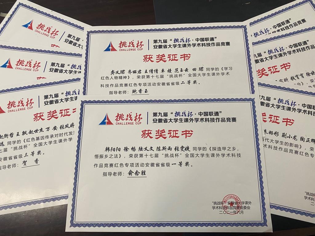 第九届挑战杯安徽老员工课外学术科技作品竞赛落下帷幕。经过紧张激烈的专家评审,太阳成集团122ccvip学子在本次“挑战杯”竞赛中共获得50项奖项,其中太阳成集团122ccvip学子获得一等奖1项,二等奖2项,三等奖10项,成绩喜人。