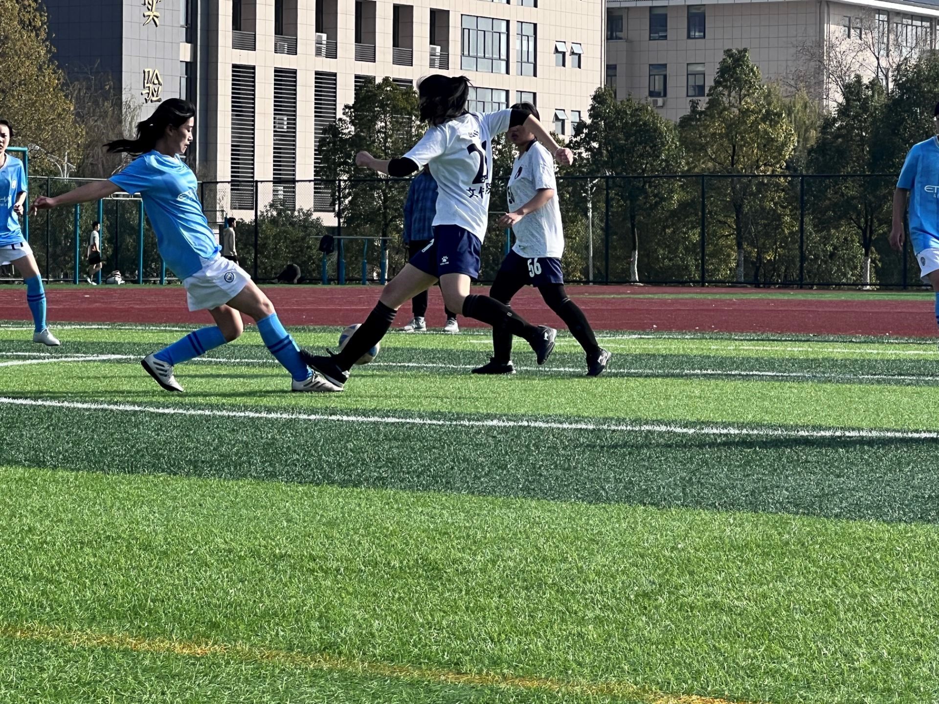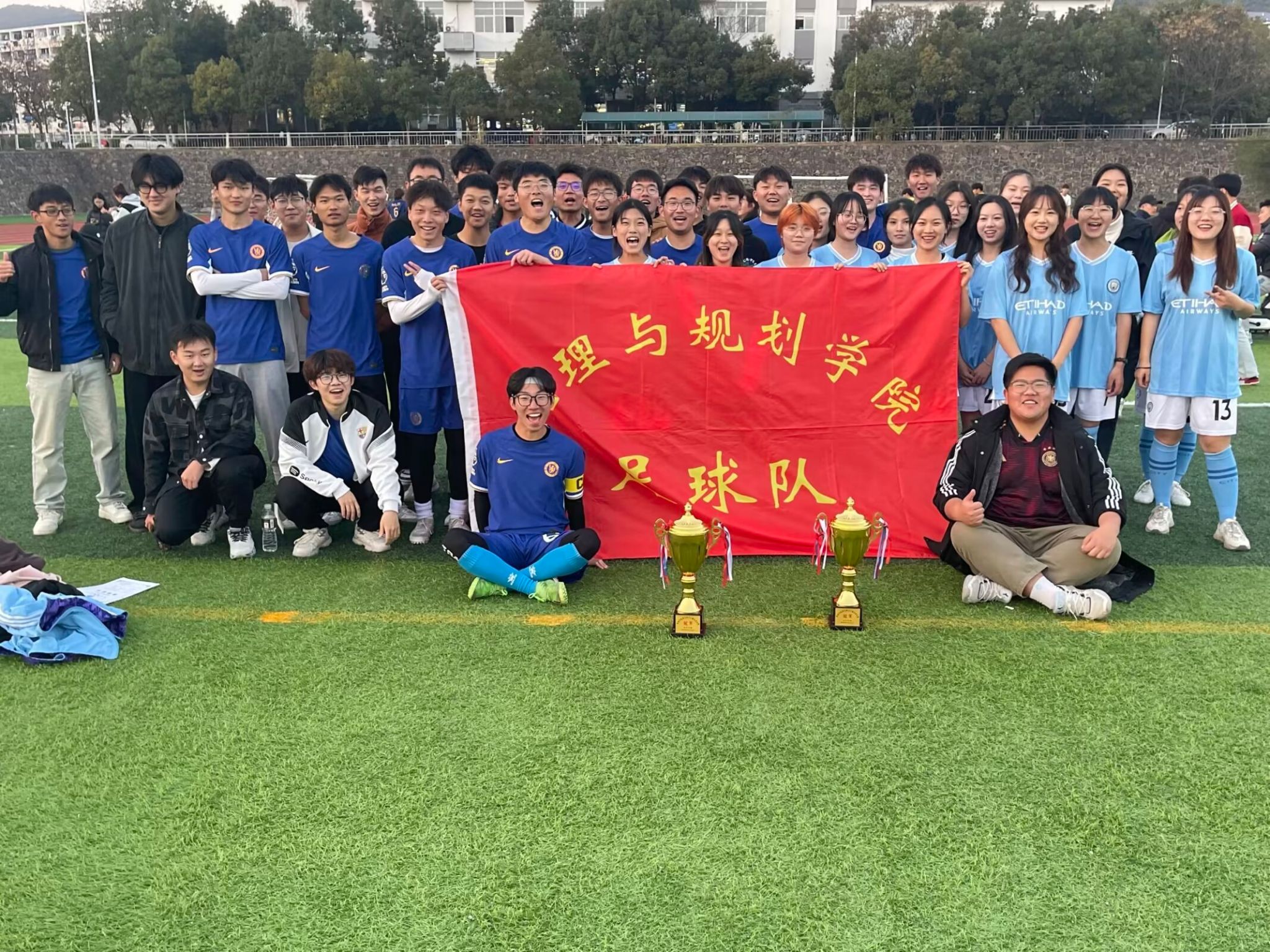 赛场上,男女足球队发扬“艰苦奋斗、敢于拼搏、团结协作、永不言弃”的精神,精诚团结,奋勇拼杀,一路过关斩将,最终,以优异的战绩勇夺冠军。