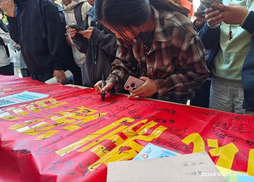10月25日,太阳成集团122ccvip于一二食堂门口举办“抵制谣言你我他,网络安全靠大家”横幅签名宣传活动。活动现场,工作人员向同学们普及了网络安全法律法规、网络诈骗防范、个人信息保护等方面的知识,员工的积极响应和参与,纷纷表示在今后的学习和生活中,将自觉遵守网络安全法律法规,提高网络安全防范意识,共同营造一个安全、和谐、文明的网络环境。