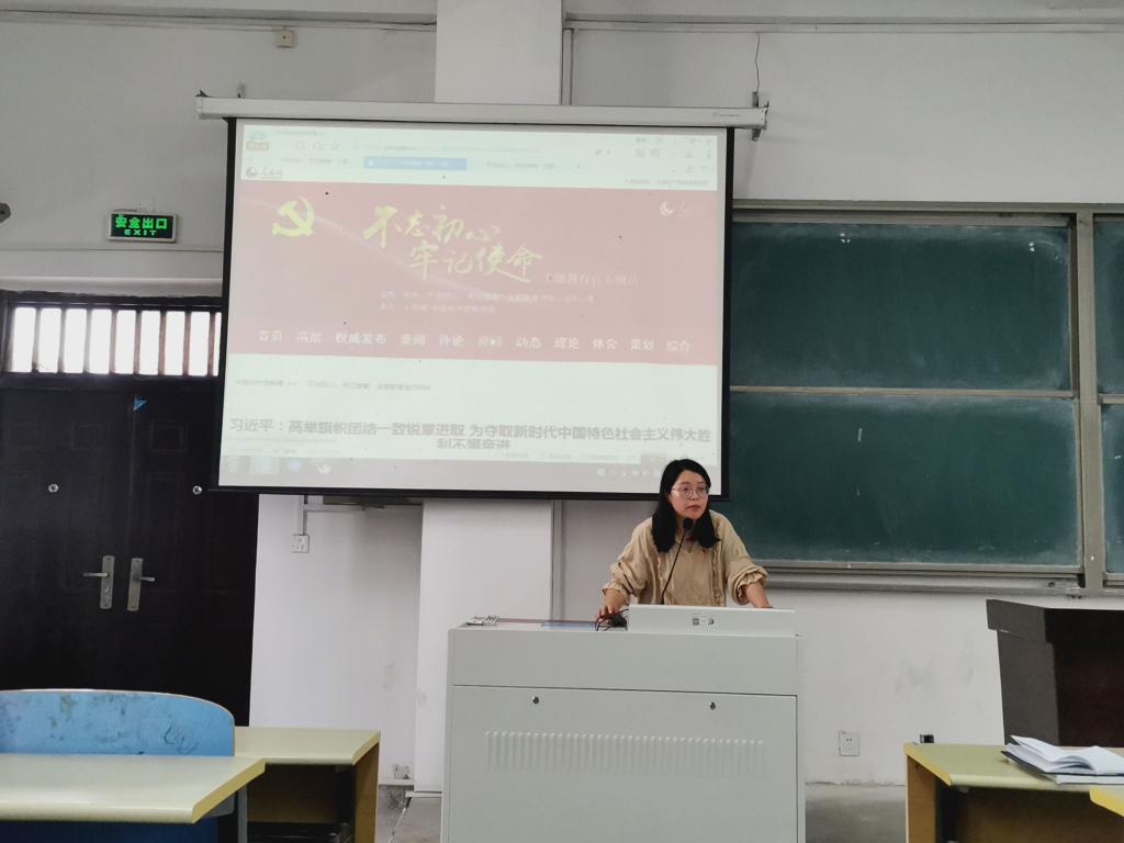 9月25日下午,太阳成集团122ccvip员工第一、第二支部在博文楼阶梯教室101开展了以“不忘初心,牢记使命”为主题的党课活动,员工第一支部书记张璐、第二支部书记黄磊以及全体员工党员参加了此次党课,课程由张璐主讲。