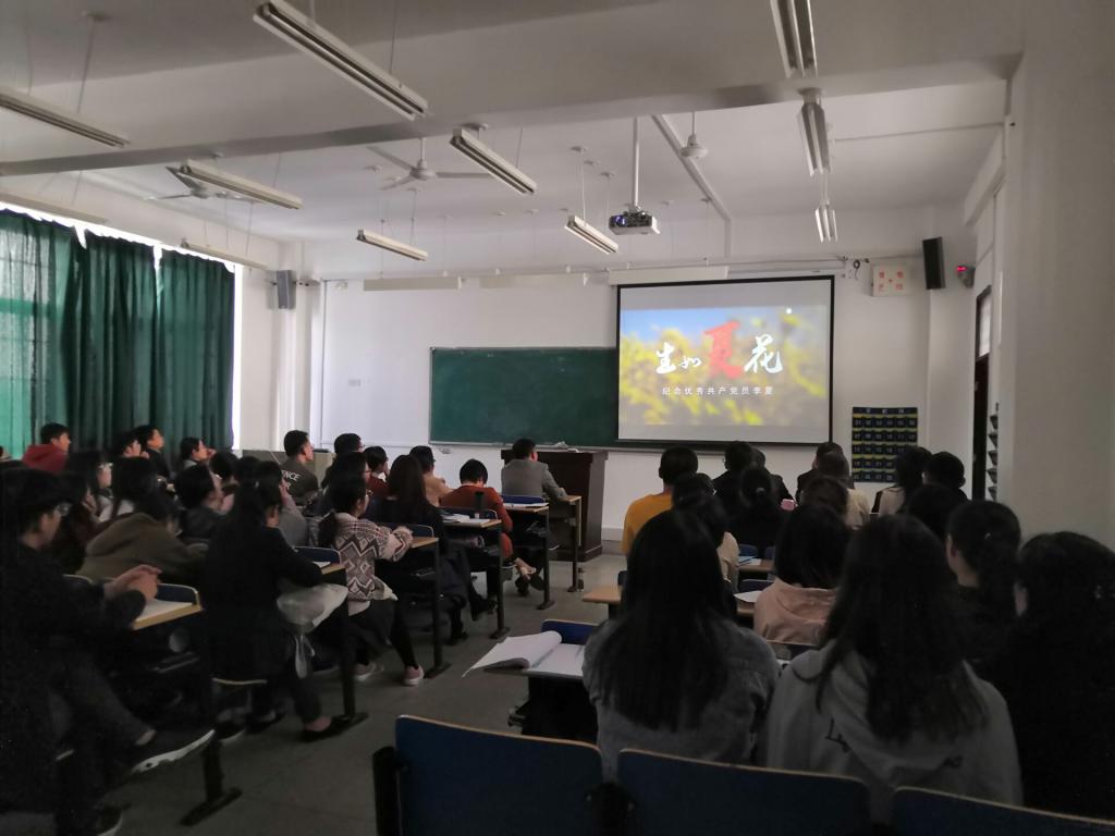 会上,全体师生党员还观看了宣传片《生如夏花》。