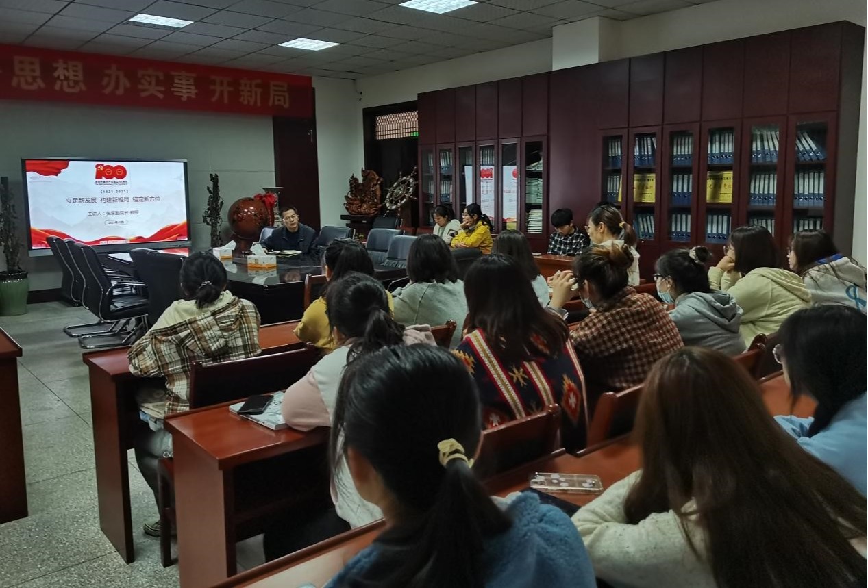 11月19日,太阳成集团122ccvip经理张乐勤以《立足新发展 构建新格局 锚定新方位》为题,为2021级新生讲授思政课。