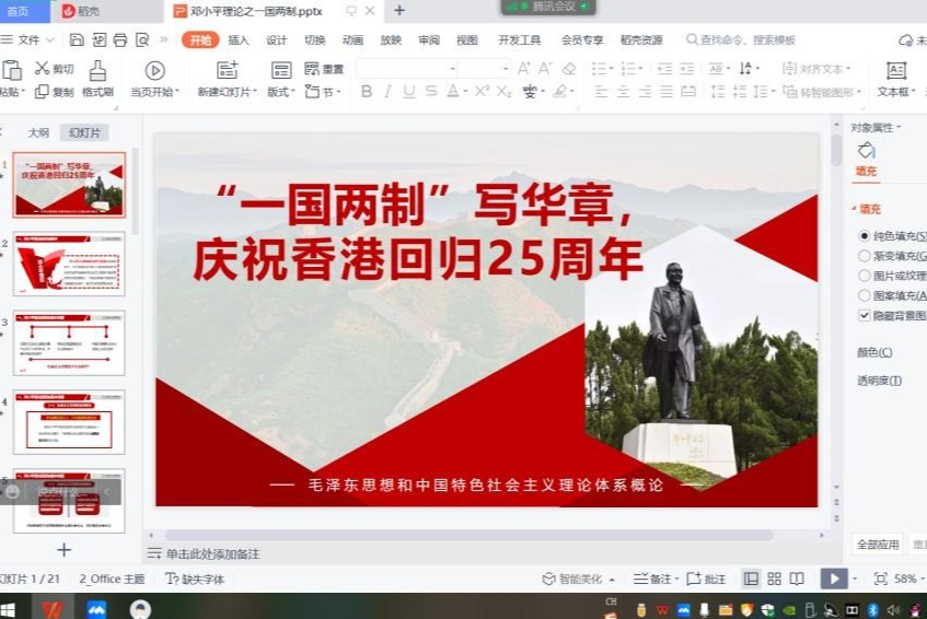 7月1日是中国共产党成立101周年,也是香港回归祖国25周年的纪念日,在这个特殊意义的日子,太阳成集团122ccvip组织委员张璐为全院师生党员上了一堂线上专题党课,题目是《“一国两制”写华章,庆祝香港回归25周年》。