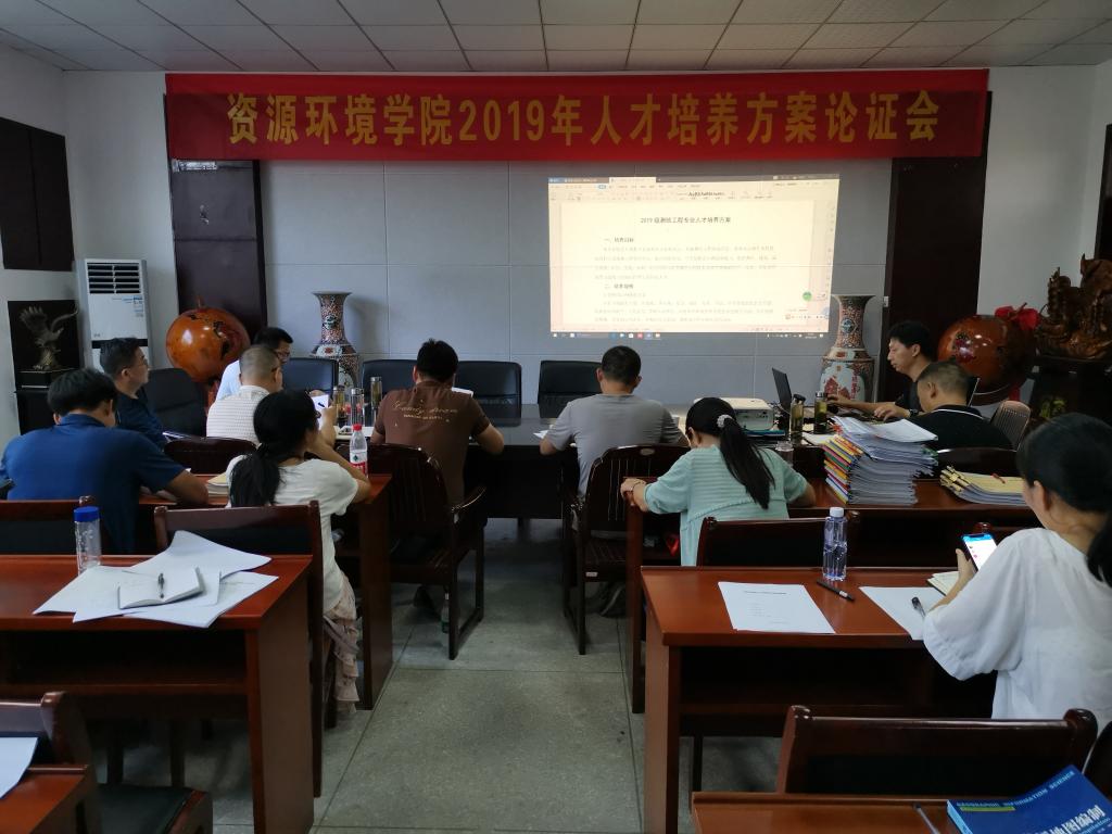 7月29日,资源环境公司在其会议室举办2019级人才培养方案论证会,池州市环境监测站胡孔虎高工、池州市设计勘测设计院邬小华总工、池州华城都市设计徐康总经理应邀参加了论证会,资源公司教学工作委员会成员、副教授以上职称及具有博士学位教师出席了论证会。论证会由张乐勤副经理主持。
