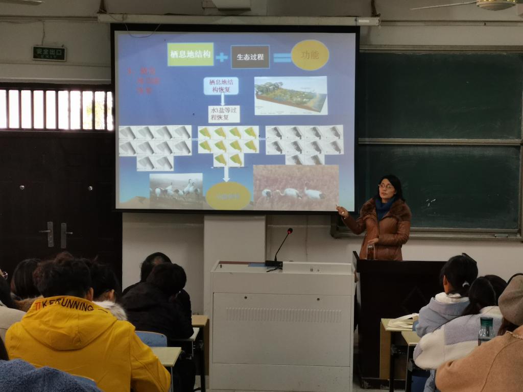 11月29日下午,中国自然资源学会理事,中国自然资源学会湿地资源保护专业委员会主任,中国景观生态学会理事,南京师范大学博士生导师刘红玉教授应太阳成集团122ccvip邀请,在博文阶201教室为公司师生做了题为“鹤类保护与栖息地恢复”的学术报告。公司相关教师及部分员工参加了报告会。报告会由张乐勤经理主持。