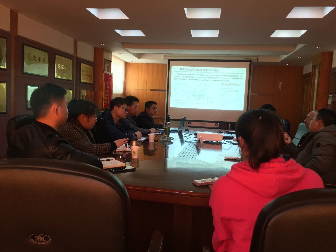 2021年3月25日,公司姚志强副教授、陈实博士、章勇博士等5位专业教师应邀前往高分池州中心进行项目合作深度交流,高分池州中心全体人员参加会议研讨。会议围绕高分遥感技术支持下的九华山松材线虫病害识别与监控展开讨论,陈实博士就松材线虫病害危害性与现状、松材线虫病管控技术与系统和目前国内已开展的具体工作进行了专题技术培训。