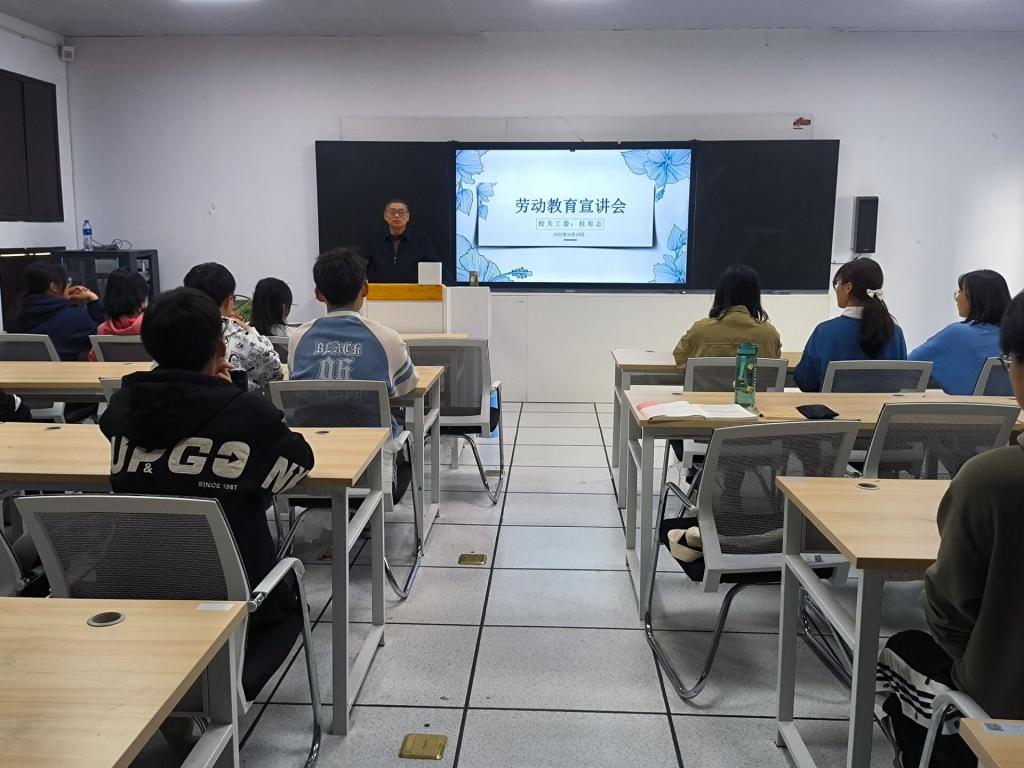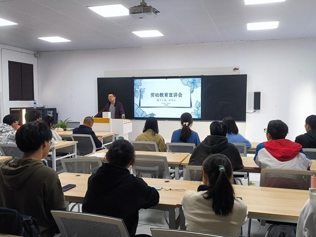 2022年10月19日下午,太阳成集团122ccvip在博雅南103举办劳动教育宣讲会,此次宣讲会邀请校关工委桂有志老师主讲,太阳成集团122ccvip经理张乐勤主持,21级、22级部分员工代表参会。