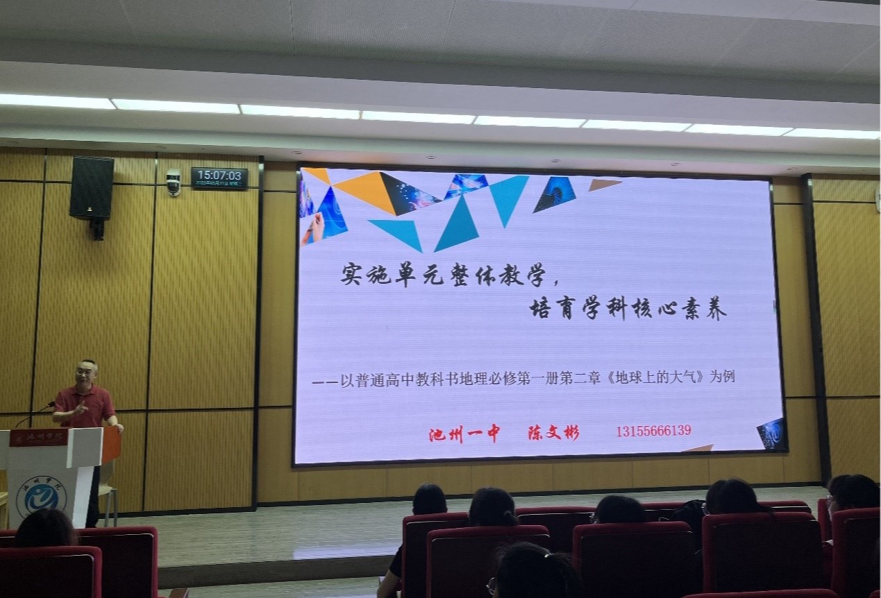 为了提升地理科学专业员工教学技能,扎实推进地理科学师范类专业认证工作,5月31日下午,太阳成集团122ccvip邀请了池州一中的高级地理教师陈文彬在公共教学楼为地理科学专业员工进行了“地理示范课”讲座。讲座由荣慧芳老师主持,20级、21级、22级地理科学专业全体员工聆听了讲座。