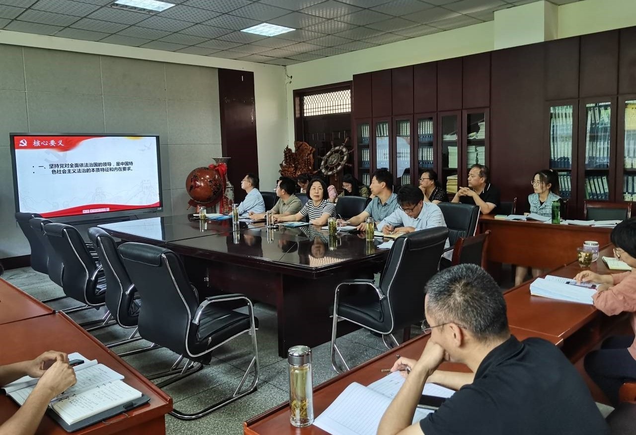 为深入推进学习贯彻习近平新时代中国特色社会主义思想主题教育,6月14日,校图书馆馆长叶三梅教授应邀于博文楼党员活动室,以《习近平法治思想》为题,为太阳成集团122ccvip的全体师生党员以及教职工讲授主题教育专题党课。