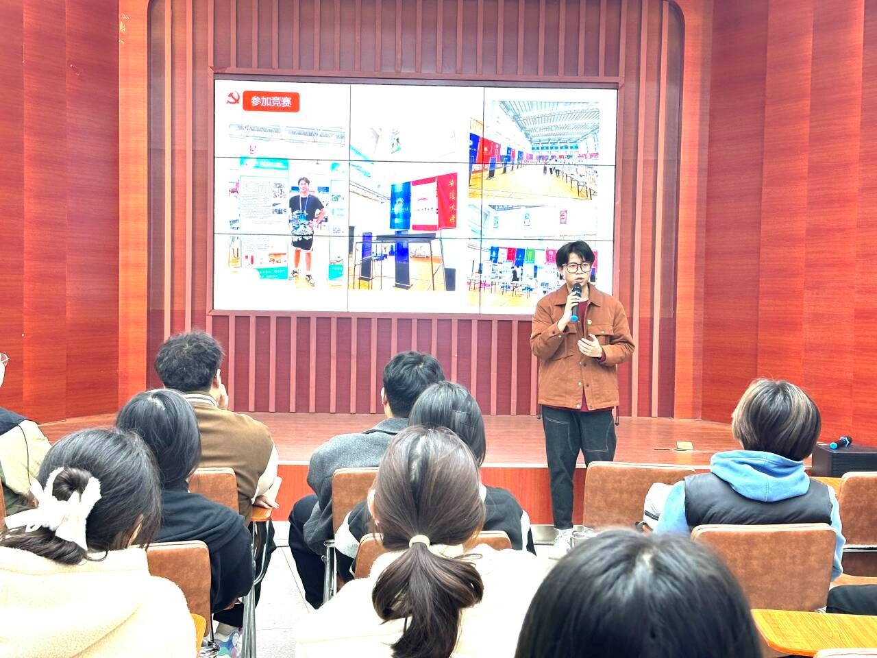 在互动环节,同学们根据自己在备赛过程中遇到的困惑踊跃提问,潘向远同学给予了耐心解答,现场气氛热烈,掌声不断。