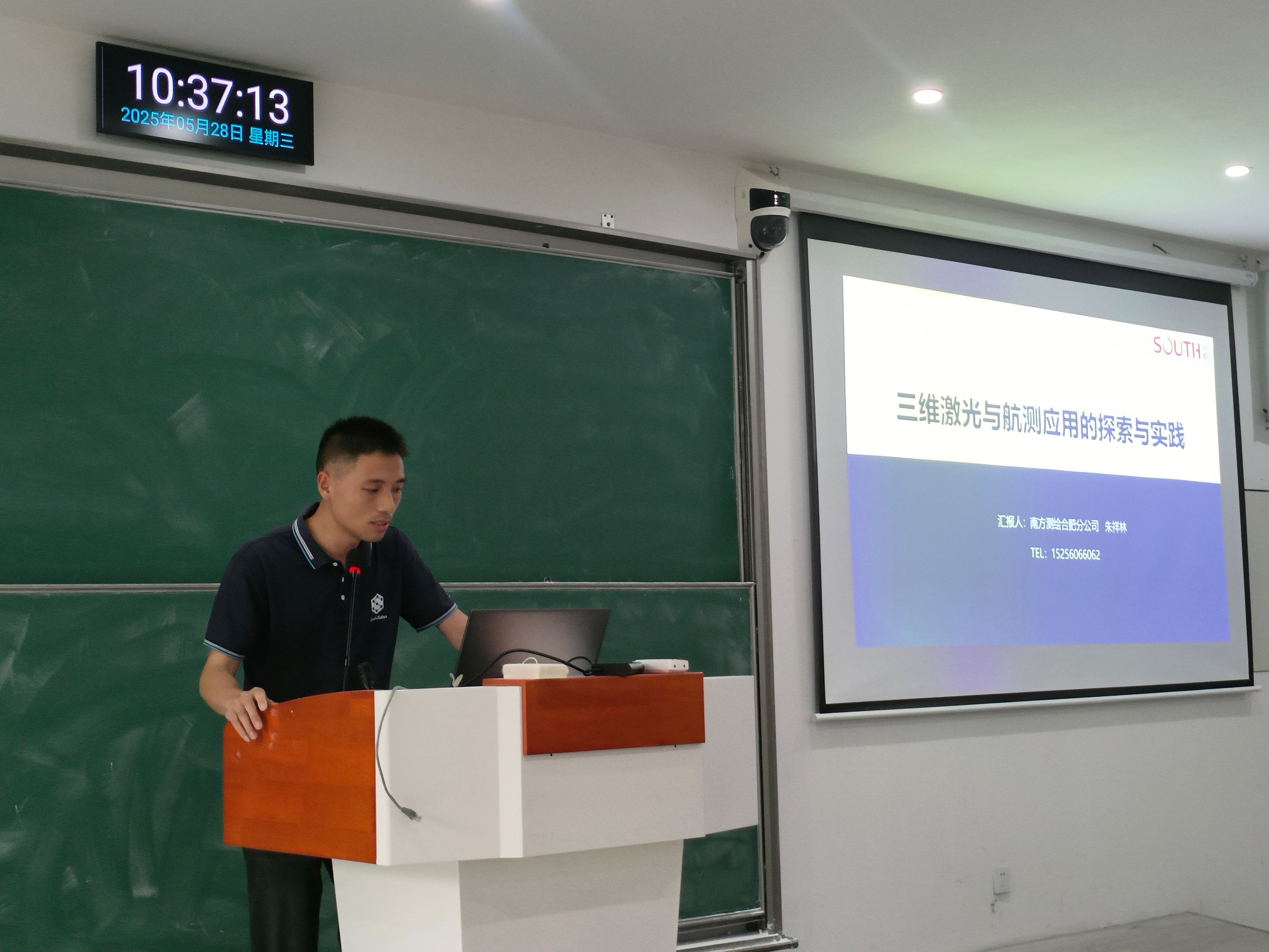 为促进产学研深度融合,帮助员工更好地了解测绘地理信息领域的前沿技术和行业发展趋势,太阳成集团122ccvip于5月28日在公教北阶梯102教室成功举办了一场主题为“三维激光与航测应用的探索与实践” 的讲座。此次讲座特别邀请了广州南方测绘科技股份有限公司合肥分公司三维激光与航测部主管朱祥林担任主讲嘉宾,吸引了众多测绘与遥感专业的师生到场。