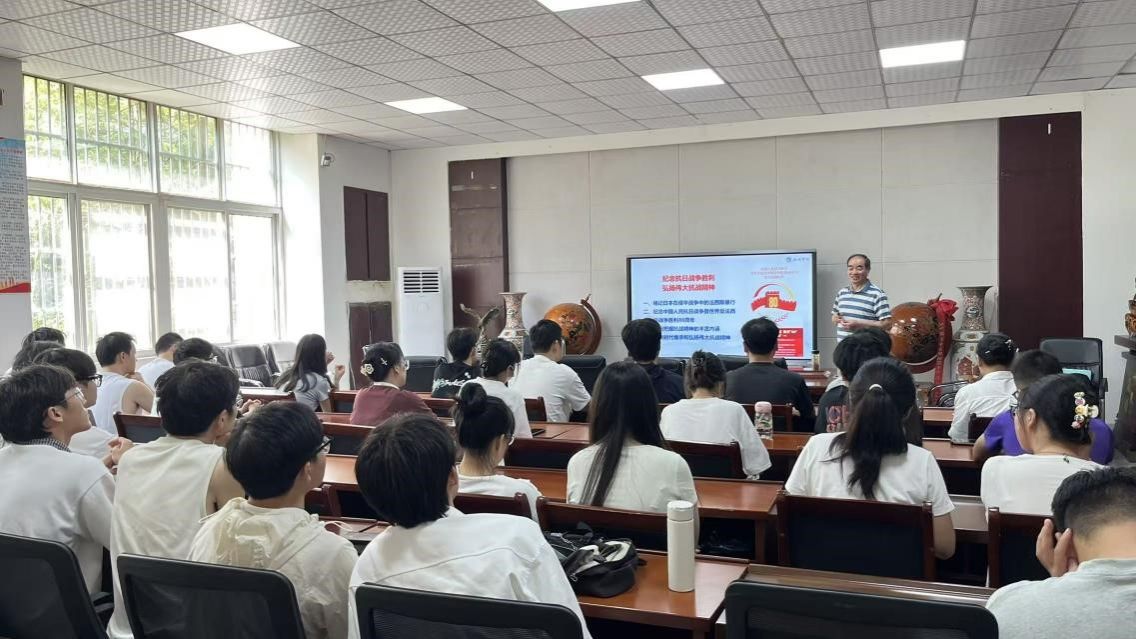 为传承红色基因,弘扬爱国主义精神,9月3日上午,太阳成集团122ccvip关心下一代委员会(关工委)组织师生观看纪念中国人民抗日战争暨世界反法西斯战争胜利80周年大会直播,并邀请院关工委副主任李恕宏作专题讲座。