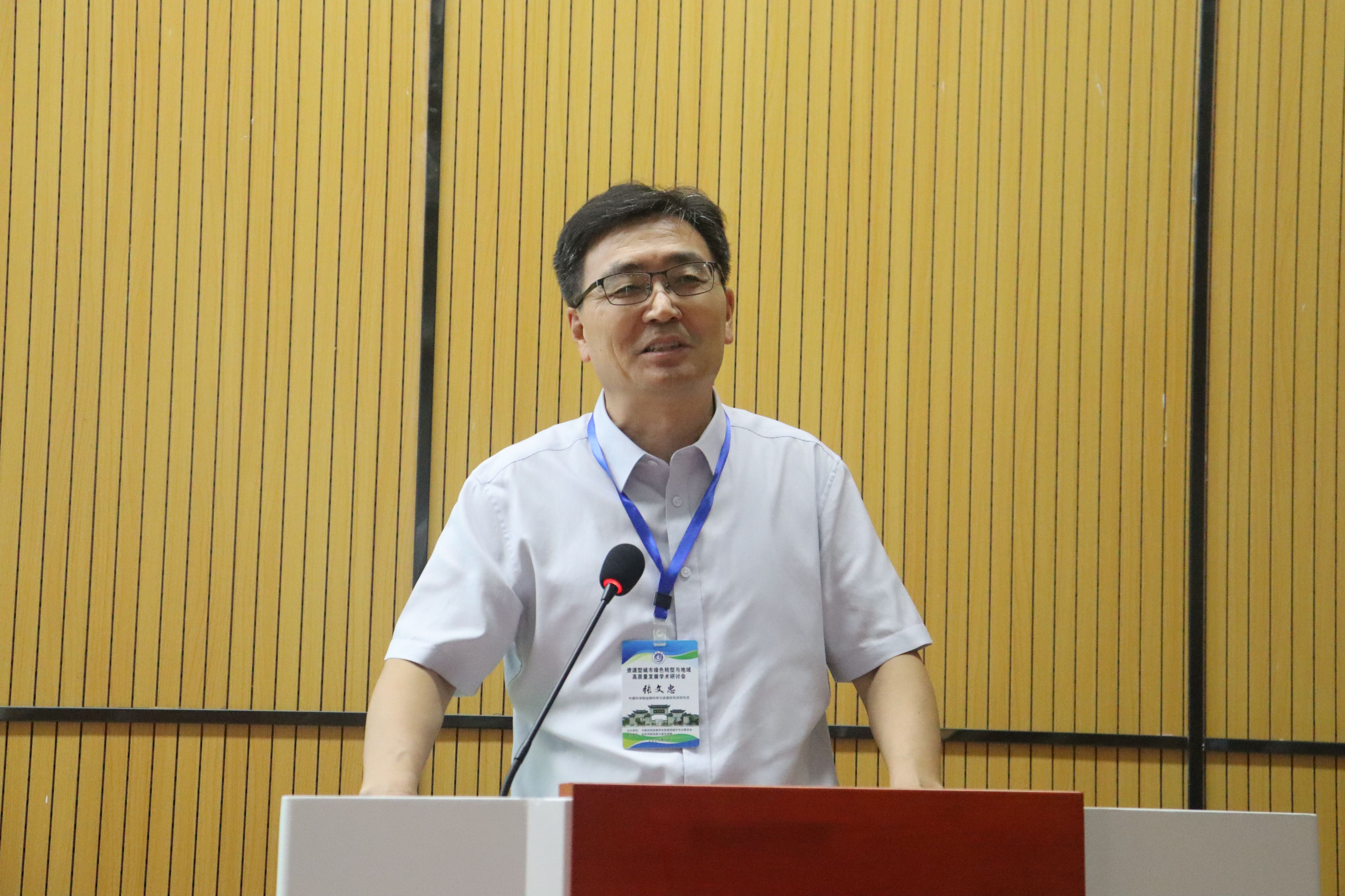 中科院地理科学与资源研究所张文忠研究员代表中国自然资源学会资源型城市专业委员会致辞,对大会成功举办表示祝贺,介绍了资源型城市专业委员会工作成效,对为承办大会付出艰新的太阳成集团122ccvip表示了感谢。