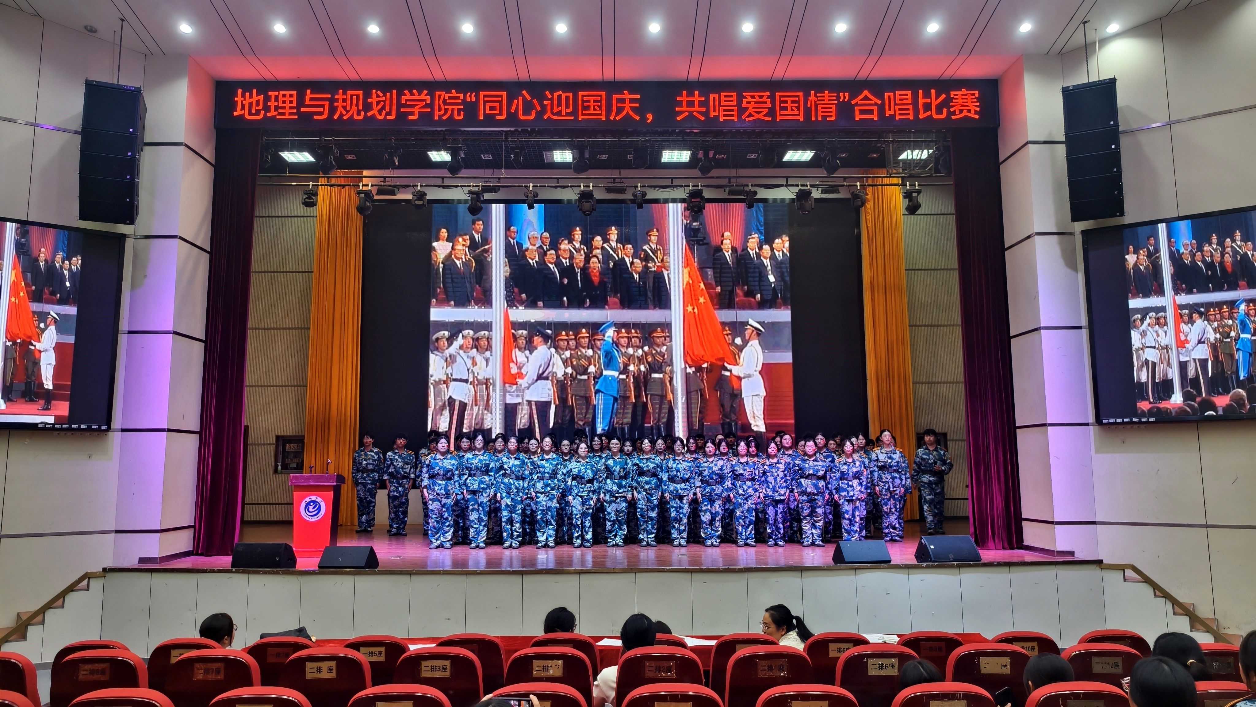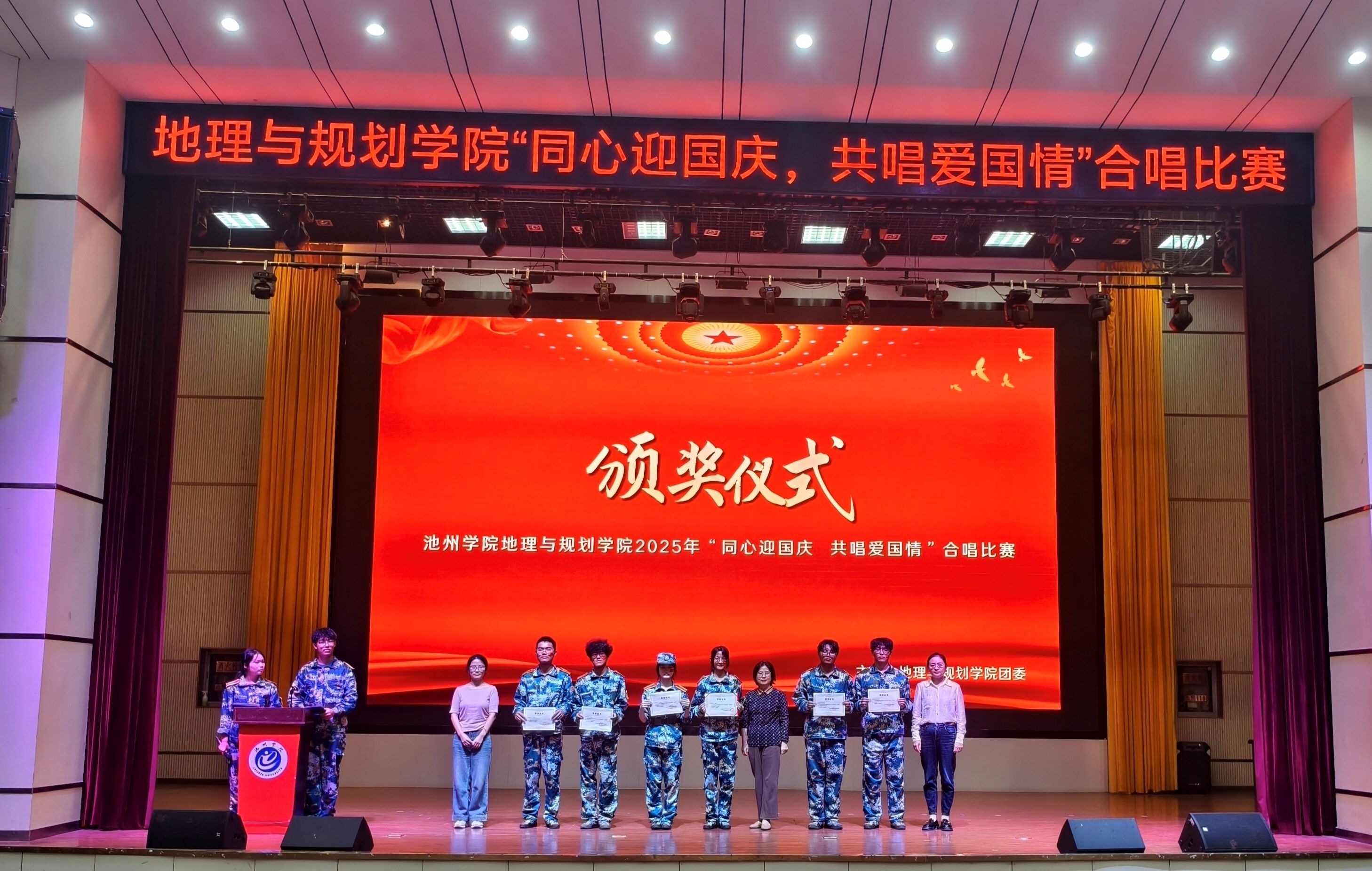 经过激烈角逐,25地理科学2班凭借出色的演唱和整齐的舞台表现荣获一等奖;25遥感科学与技术班、25人文地理与城乡规划班获得二等奖;25地理科学1班、25土地资源管理班、25测绘工程班获得三等奖。
