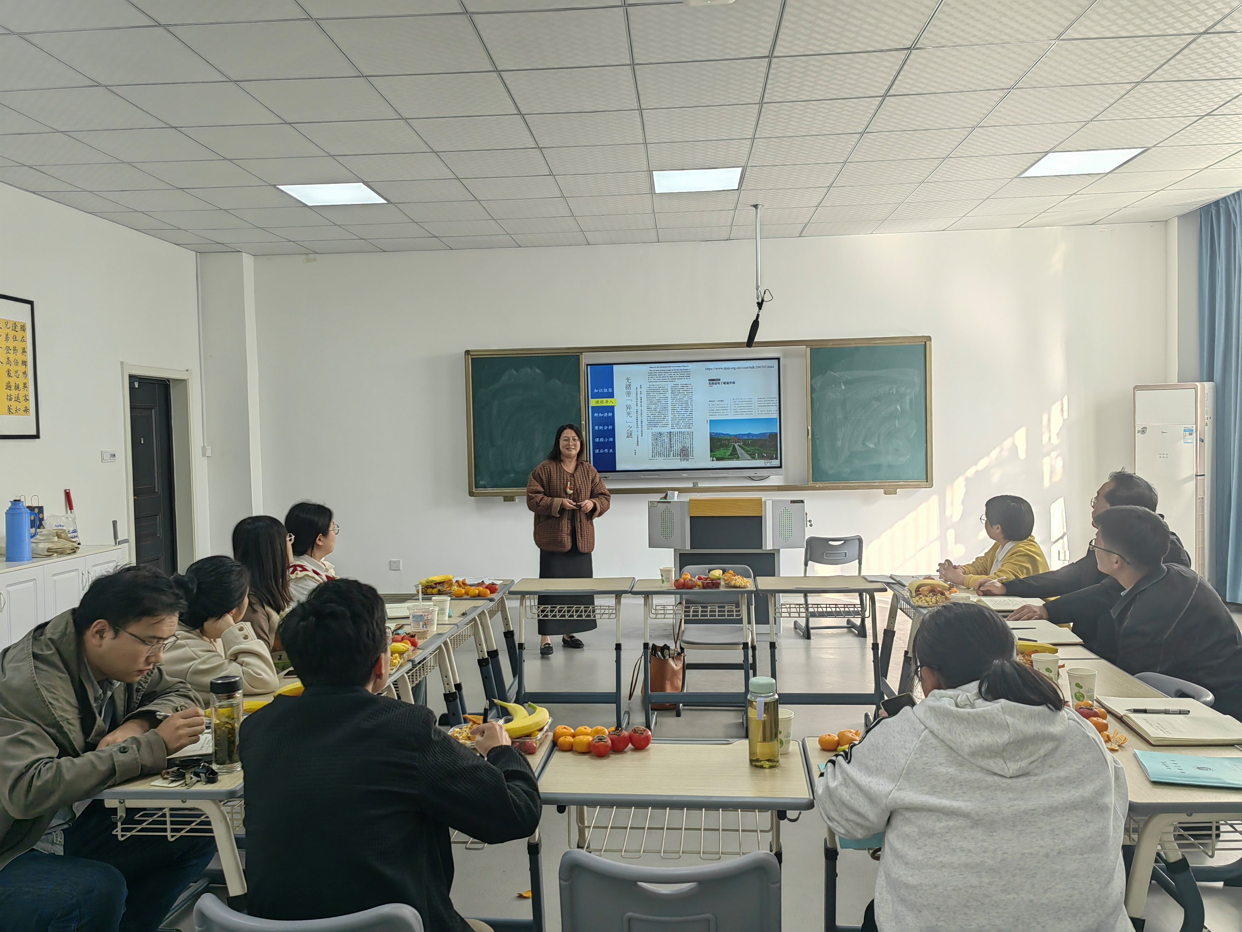 会议的第一个环节为教学观摩活动,全体教师共同观摩了材料与环境工程公司郑楠楠博士的示范课。郑老师以其深入浅出的教学方法和丰富的课堂互动环节,为大家呈现了一堂生动、高效的课堂。课后,郑老师还就智慧教学方面分享了自己的宝贵经验,让与会教师受益匪浅。